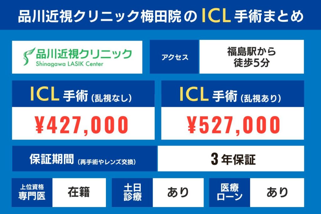品川近視クリニック 梅田院のICL手術費用