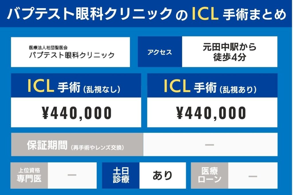バプテスト眼科クリニックのICL手術費用