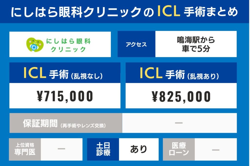 にしはら眼科クリニックのICL手術費用