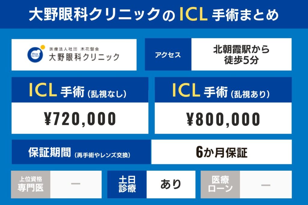 大野眼科クリニックのICL手術費用