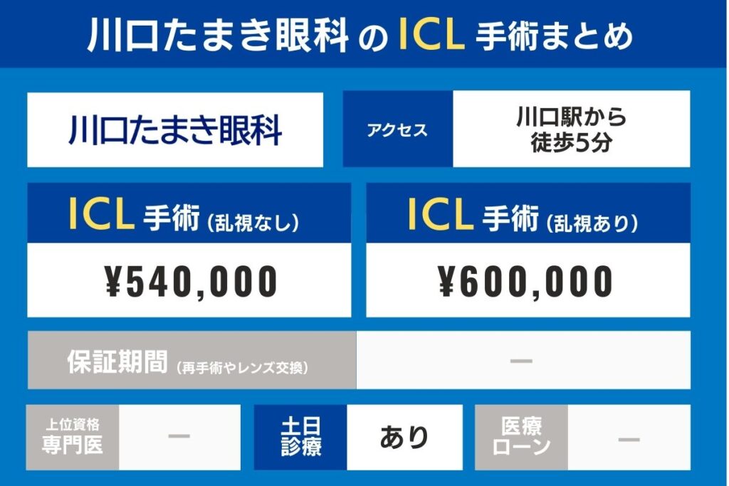 川口たまき眼科のICL手術費用